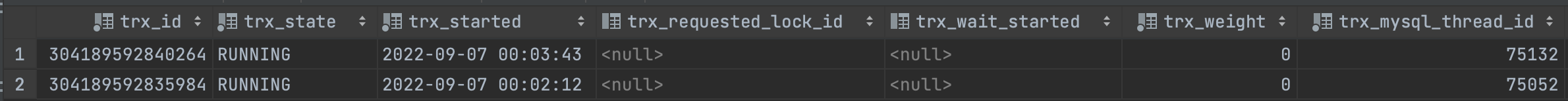 현재 Sleep 상태로 대기하고 있는 애들 중에 트랜잭션이 아직 진행 중인지 확인을 위해 상태를 확인해보자.