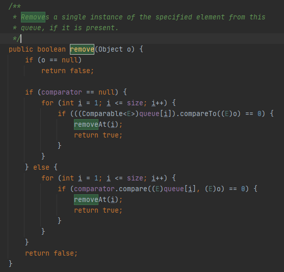 1.8 기준으로 우선순위 큐의 내부 remove 구현은 다음과 같다.