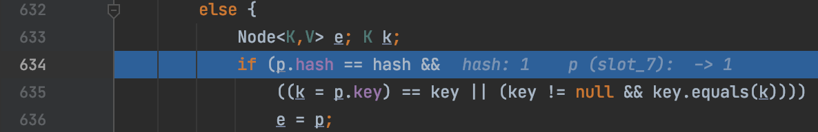 632 Line else 부터는 해시값에 속하는 버킷 인덱스에 값이 존재하는 경우이다.