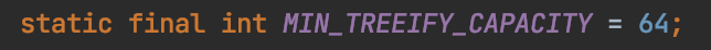 MIN_TREEIFY_CAPACITY의 값은 다음과 같다.