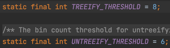 여기서 내가 궁금한 건 정말 한 버킷에 노드의 개수가 8개 이상일 때 바로 연결 리스트에서 트리로 바로 바뀌는 것일까?