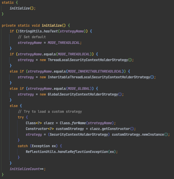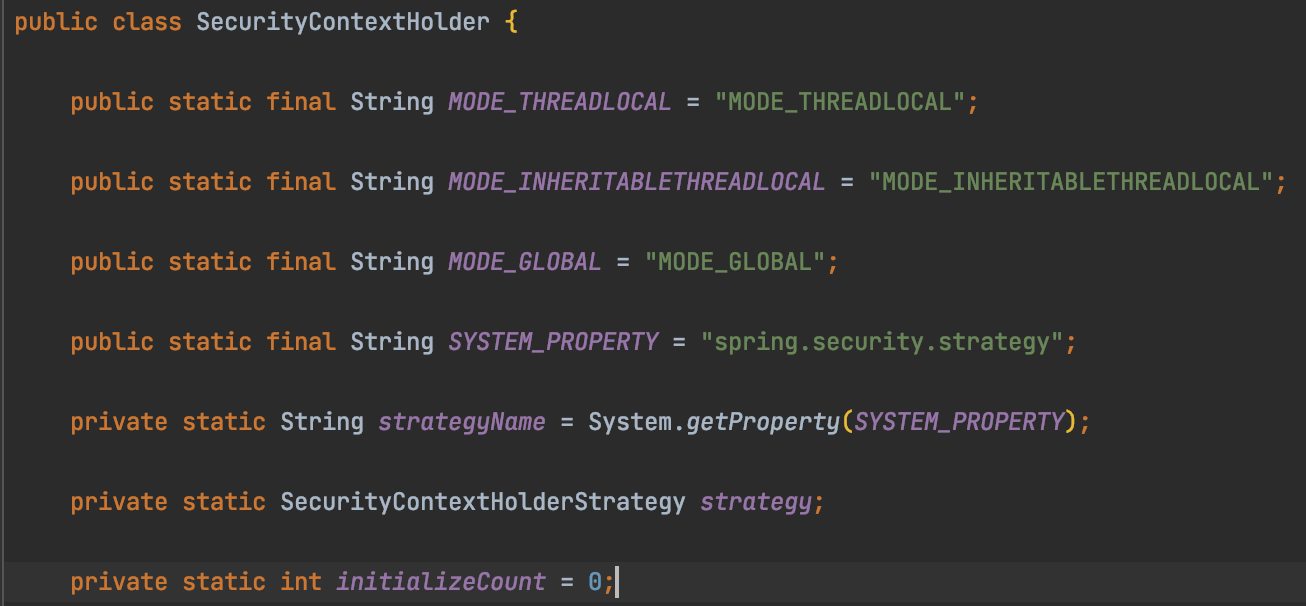 위에서 해석한 내용을 다시 확인해보면 SecurityContextHolder는 기본적으로 ThreadLocal을 사용하고 있으며