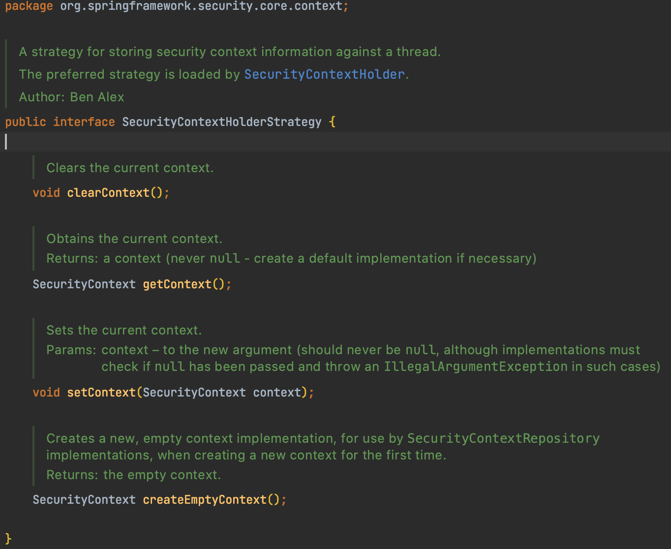 위에서 언급된 SecurityContextHolderStrategy는 무엇일까? 간단하게 알아보자.