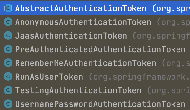 그리고 우리가 자주 사용하는 구현체는 아무래도 UsernamePasswordAuthenticationToken이지 않을까 한다.
