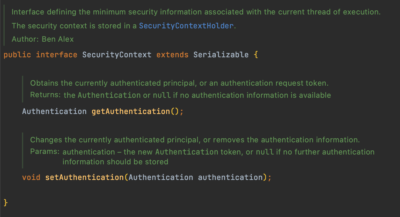 (SecurityContextImpl 내부를 보면 Authentication을 가지고 있는 것 외에는 크게 중요한 게 없다.)